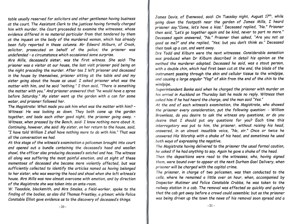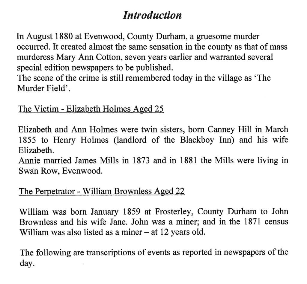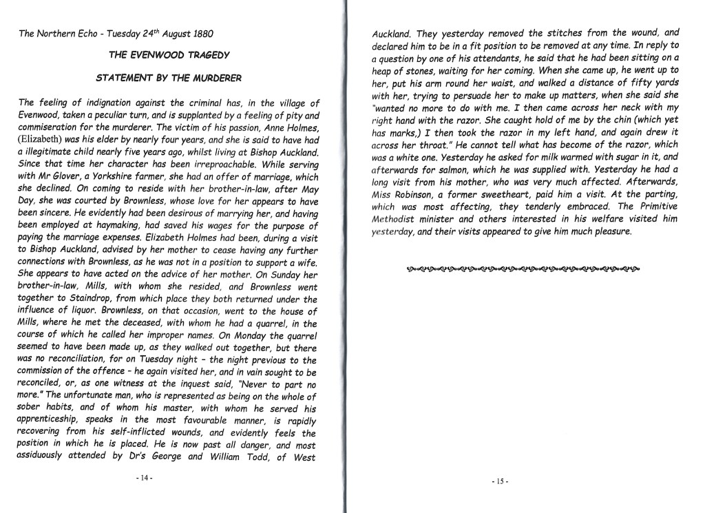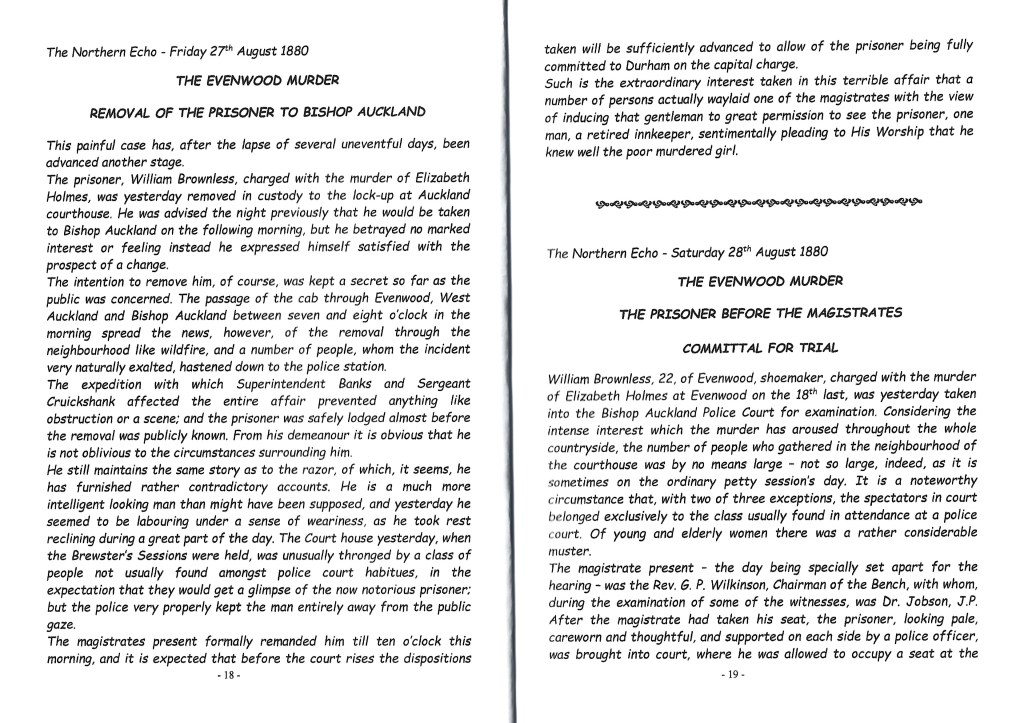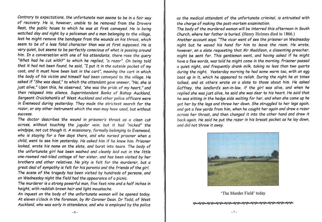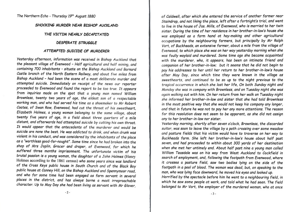 1880 THE EVENWOOD MURDER This account is a copy of Brenda Robinson’s booklet, “The Evenwood Murder 18 August 1880.”