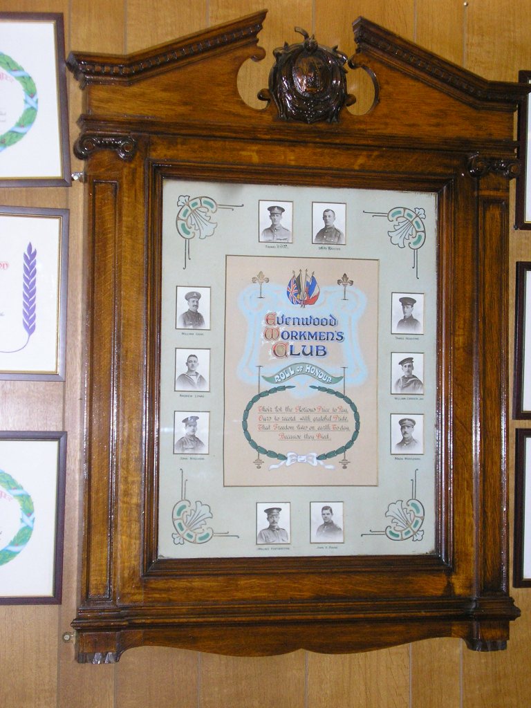 The memorial plaque takes the form of a wall mounted tablet and commemorates the 37 Evenwood men who fell in the Great War. It was originally located in the Comrades Hall which we believe was the building behind the Centre, formerly Collinson’s workshop.