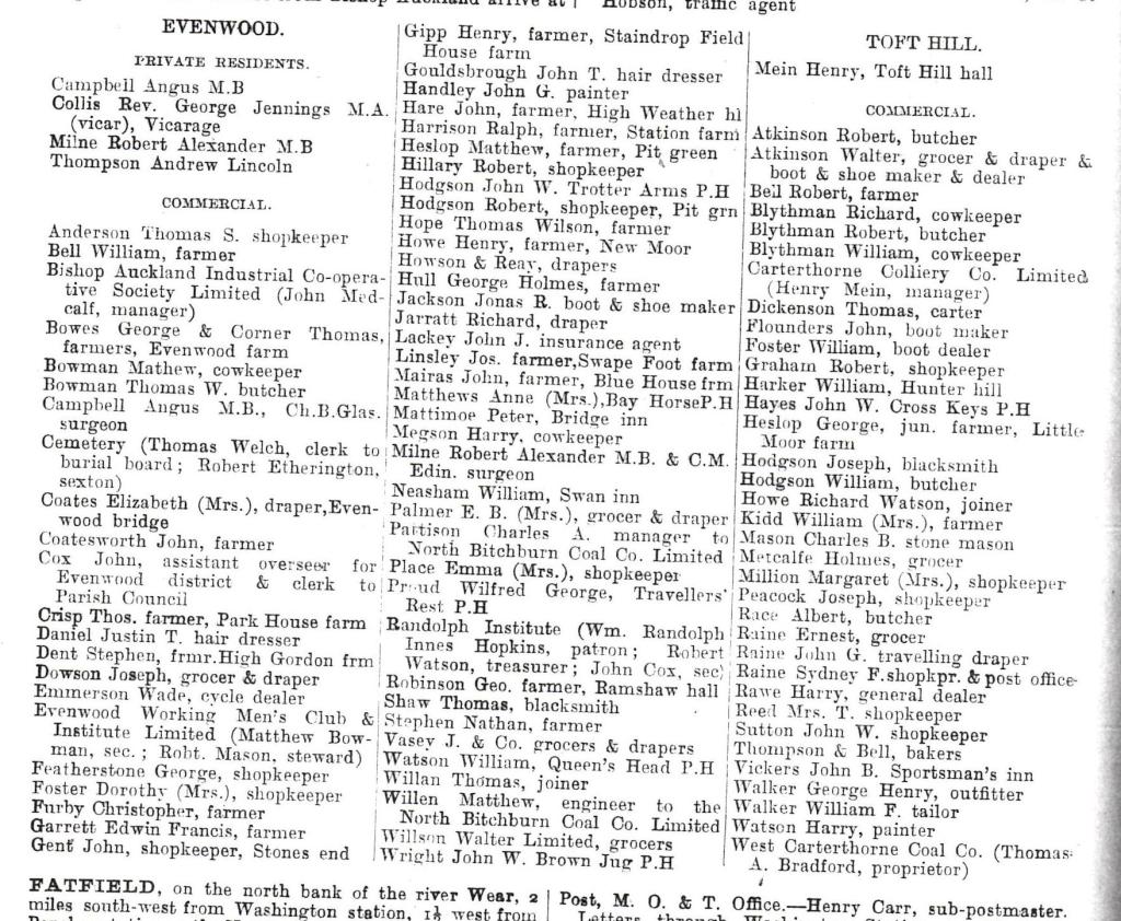 Below is the entry for Evenwood