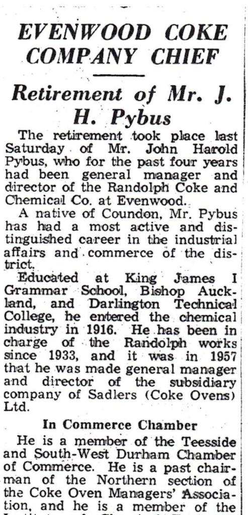 Mr. J.H. Pybus was made general manager and director of the subsidiary company of Sadlers (Coke Ovens) Ltd.
