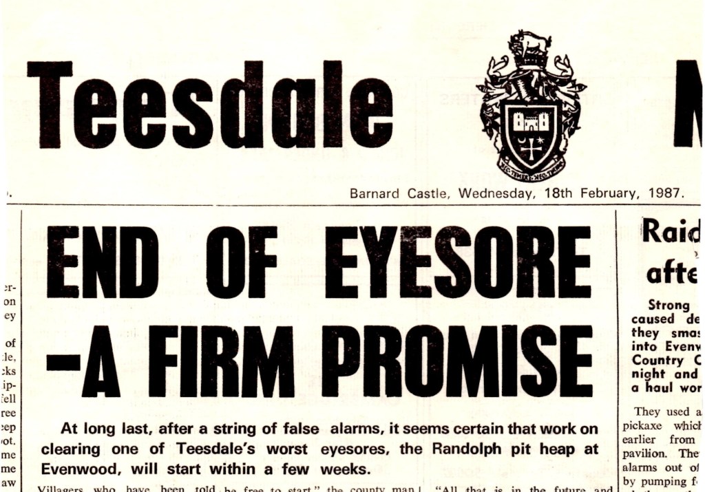 1984: Wards (Teesside) bought the site for salvage. Demolition of the buildings took place and Randolph chimney was blown up 19 December. The site was then sold to Durham County Council for redevelopment including reclamation of the Randolph (South) pitheap.