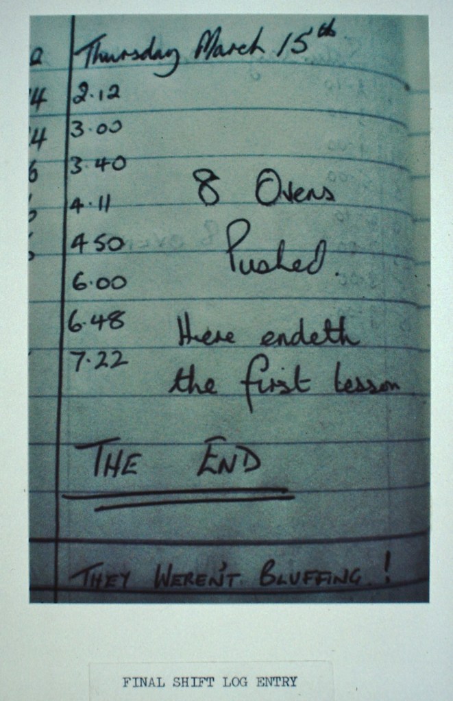 1984 (15 March): the last oven was shoved by Eric Priestley, Michael Dodds, Jack Firby and Norman Wren (see photo below).