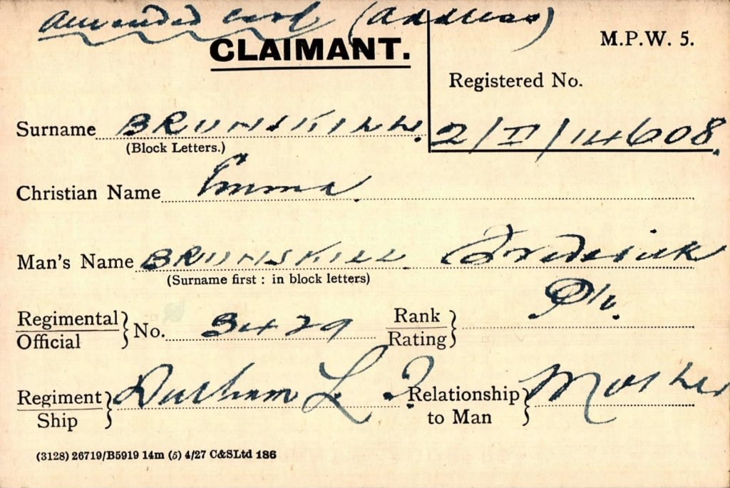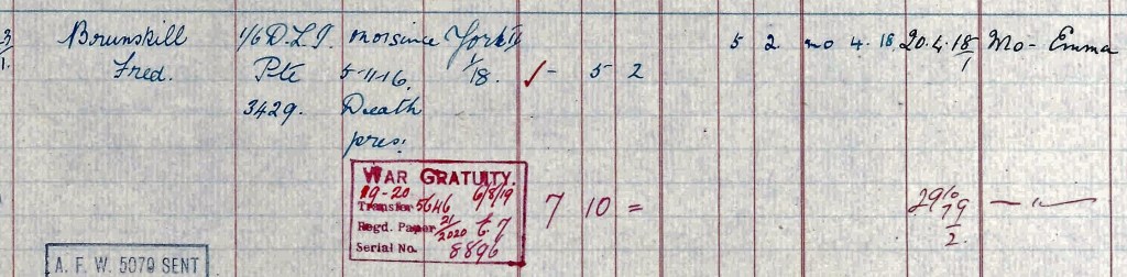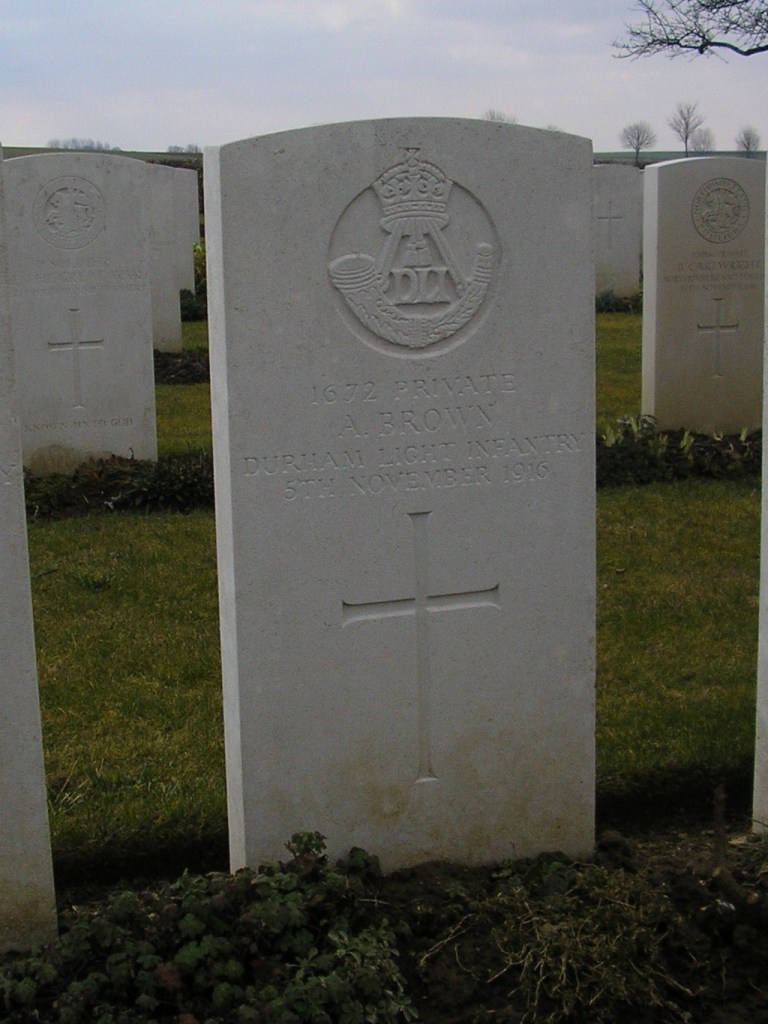 - Private Alfred Brown, born in Evenwood, moved to Staindrop, was killed in action 5 November 1916 and is buried at Warlencourt.