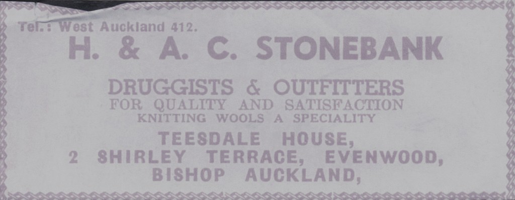 - Stonebank’s: The one nearest to Shirley Terrace was called Stonebank’s and was a drapery shop where material, knitting & sewing requirements, patterns etc. could be bought.