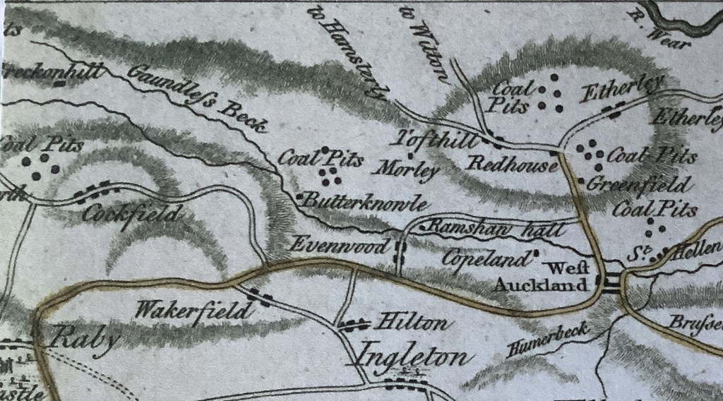 - North of Toft Hill and Etherley – the Railey Fell, Etherley and Witton Park Collieries, probably owned by Richard Pierse.