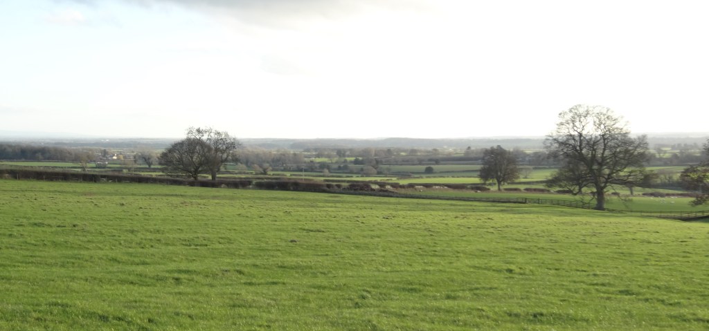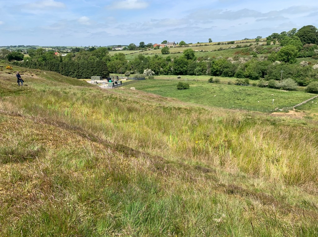 Above: 2025: The view northwards from Alwent Hall looking up to the Keverstone ridgeline. The proposed waggon way would have run down the hill side to the east of Low Keverstone Farm, to the right of the white farm building to the mid-left of the photo.