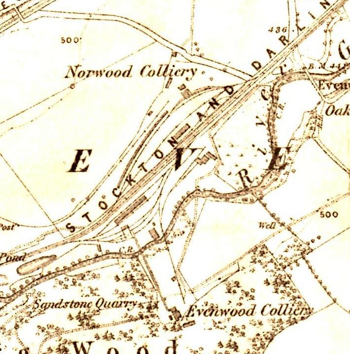 Above: The 1859 OS map to show Norwood and Evenwood Collieries