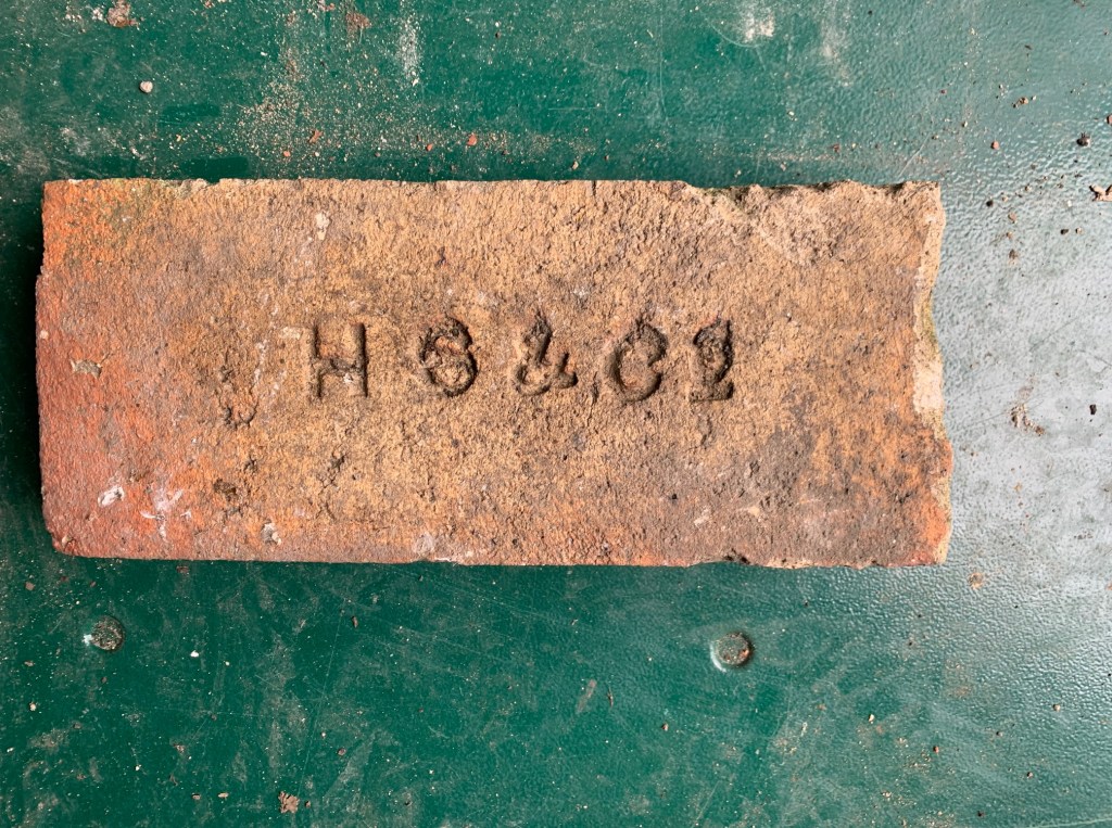 Bricks found in the vicinity of the coke ovens bear the name J. HOGG. Also impressed on the right hand corner of the bed is a thumb print. These bricks are tapered and show evidence of firing – mineral deposit is caked on the smaller end.
