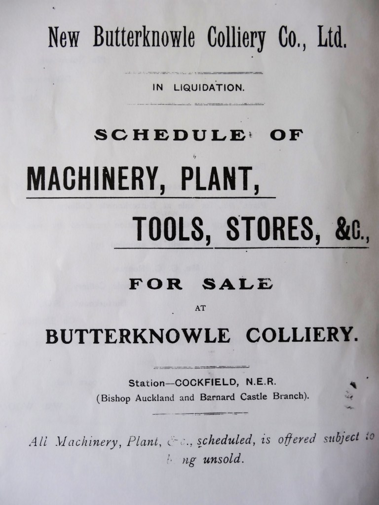 NEW BUTTERKNOWLE COLLIERY CO. LTD. LIQUIDATION SALE CATALOGUE