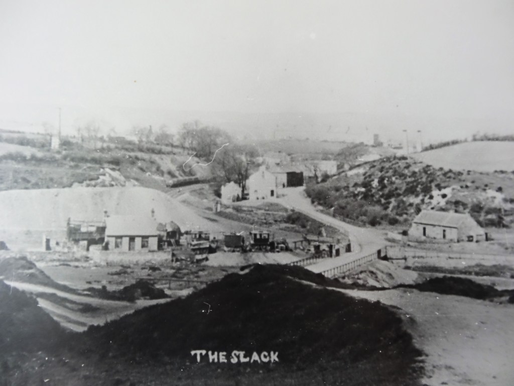 Below is a photo of The Slack, the name given to the small community at the bottom of Diamond Bank, between Butterknowle and the River Gaunless. The photo shows cottages amongst an industrial backdrop – a pit heap directly behind a cottage, the railway or tramway leading to Diamond Pit and Quarry Pit beyond, to the right of the photo, two chimneys of the engine shed to the coke works. I was told that these 2 chimneys were the brickworks but the OS map indicates an engine shed with tracks leading to the coke ovens. The village of Butterknowle lies at the top of the bank along Pinfold Lane. Stone Row can be seen along the ridge.