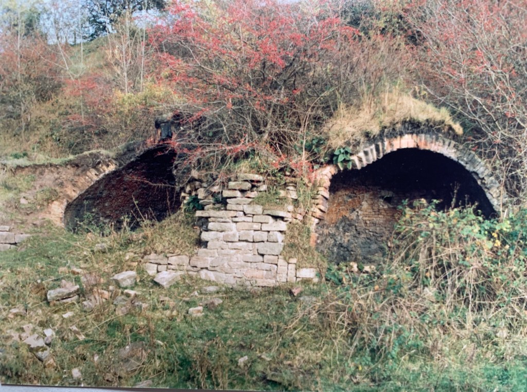 A SKETCH OF 18th C COKE OVENS AND BELOW 3 PHOTOS OF ABANDONED BEEHIVE COKE OVENS AT BUTTERKNOWLE, c.1986