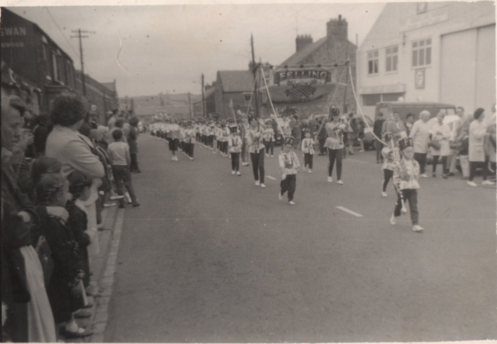 Below: 1964, the Felling Jazz Band passing West Cumberland Farmers building, formerly Anderson’s bus garage, Swan Street.