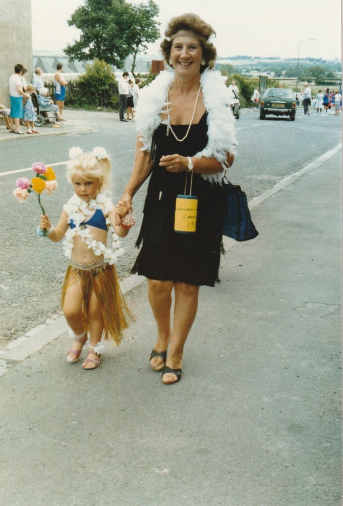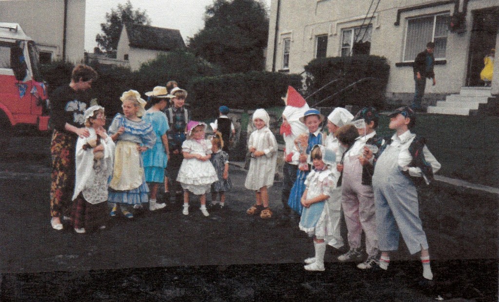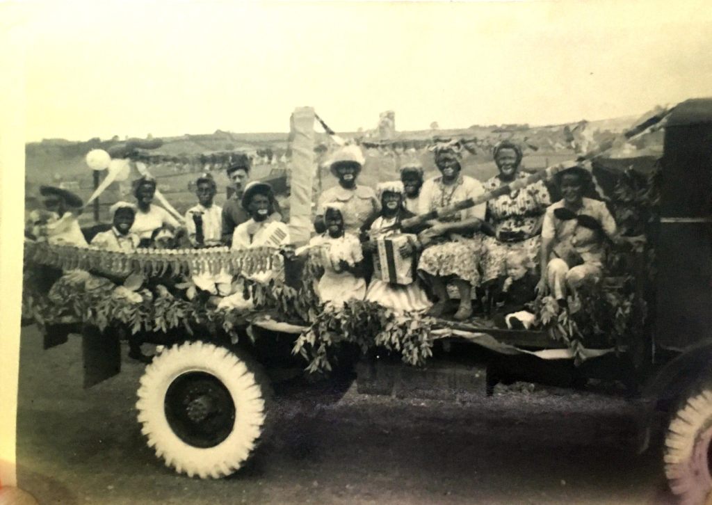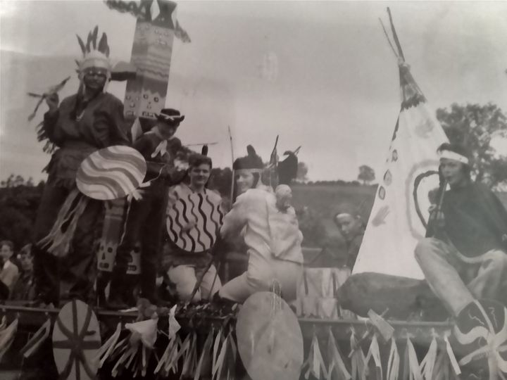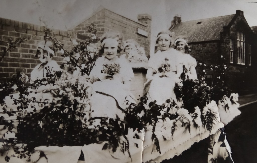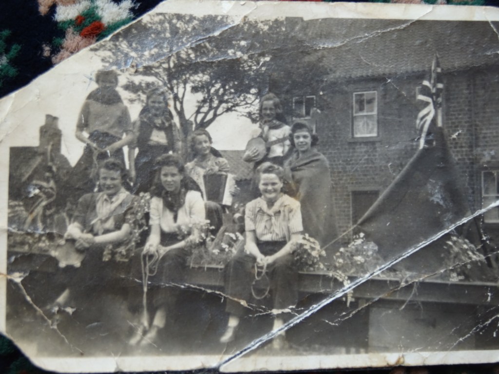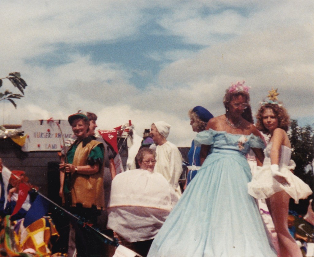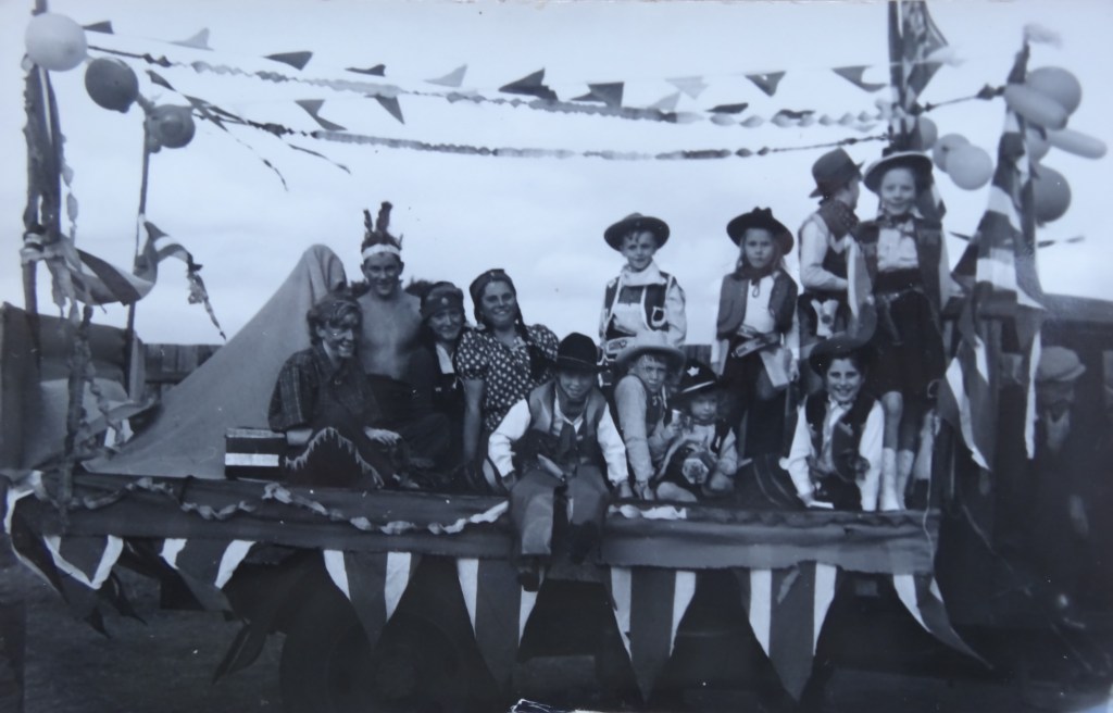 Below: The float includes Sheila Mairs, Freda Proud, Ena Proud, Betty Worthy, Annie Hutton, Jean Mairs and Gwenn Proud