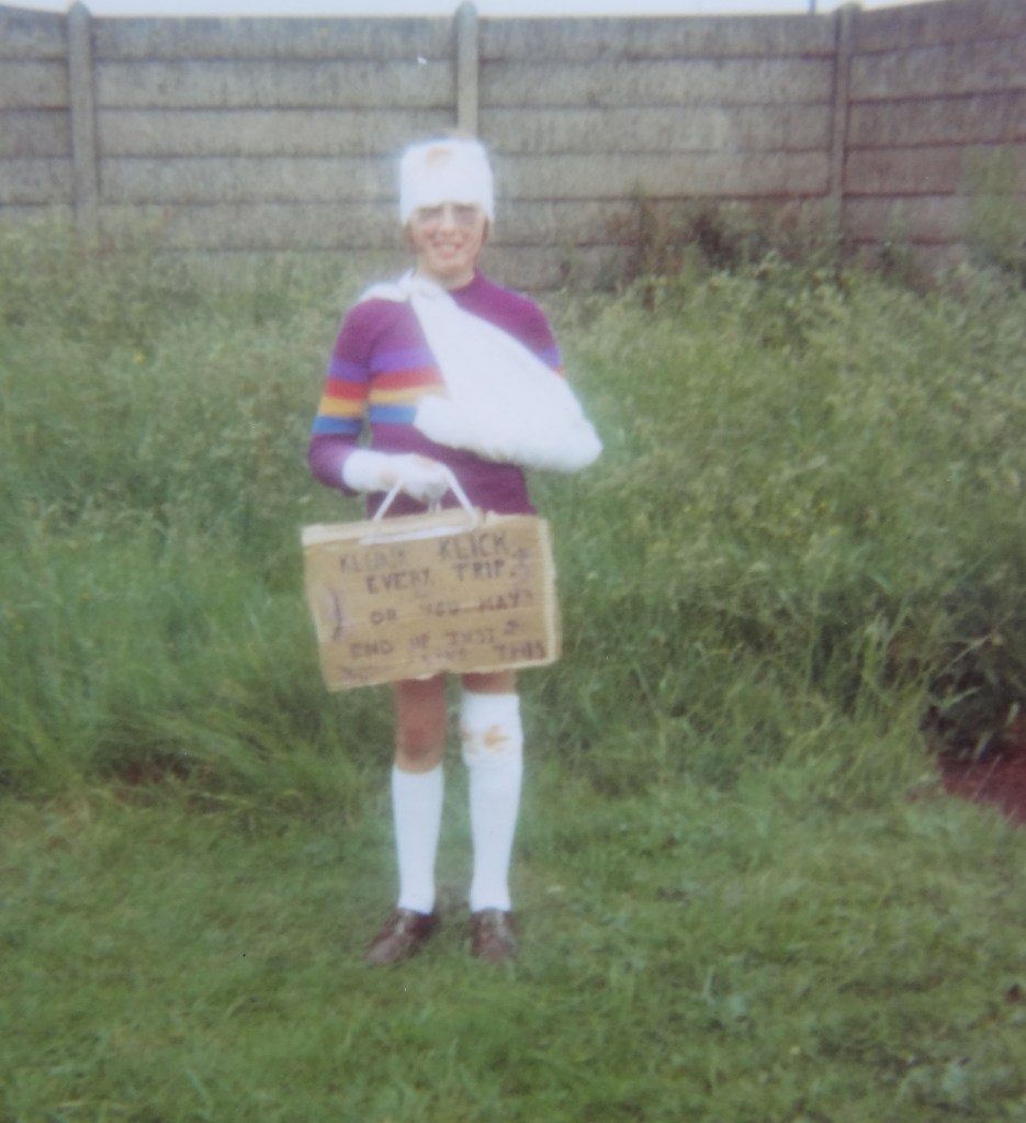 Bev Clark “Guessing 1969, it was ‘clunk click every trip or you could end up just like this'”. Back in the day, the government was trying to get motorists to use safety belts. “CLUCK CLICK, EVERY TRIP” was the catch phrase.