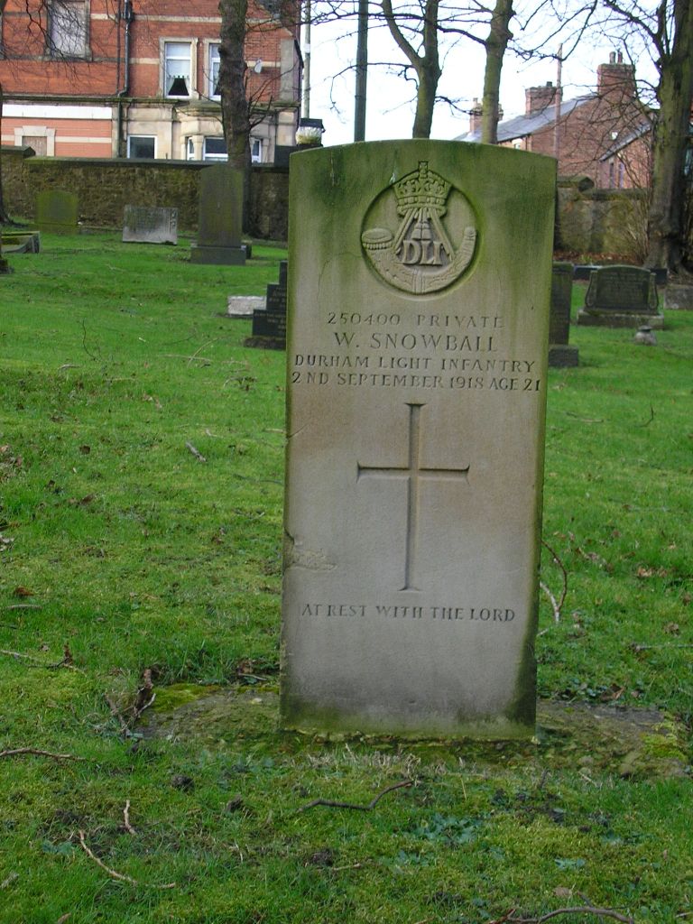 There are 7 burials of men with CWGC headstones. They are Maughan J.W.; Wilson R.W.; Snowball W. from WW1 and Birch A.H.; Peddelty M.M.; Raine G.W. and Welsh T.F. from WW2. There is also a private burial for Percy Pattison. Further information can be found on the CWGC website (again, we cannot provide a useful link here)