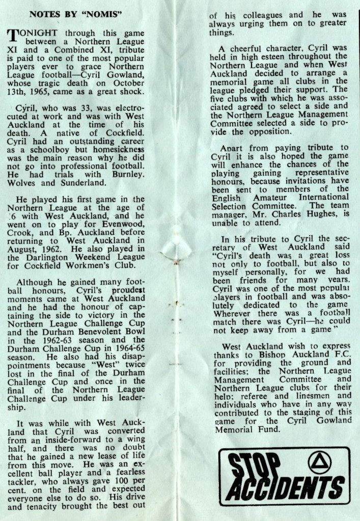 Below: 13 March 1967: Details from the Cyril Gowland Testimonial Match Programme.