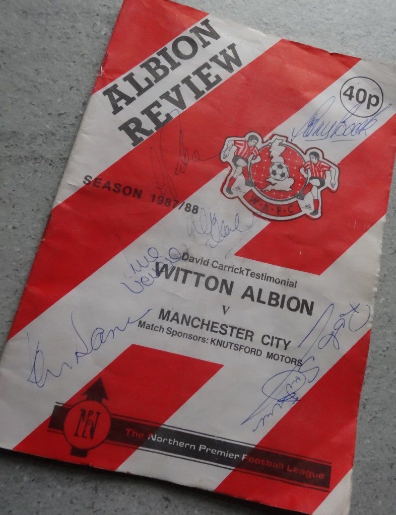 The Man. City team included the likes of seasoned professionals John Gidman, Andy Hinchcliffe, Neil McNab, Trevor Morley, Paul Simpson (presently manager of Carlisle United), Paul Stewart and Imre Viradi. Peter Barnes, son of Witton’s manager Ken Barnes, formerly of Manchester City and an England international (20 caps, 4 goals), hoped to make a guest appearance.