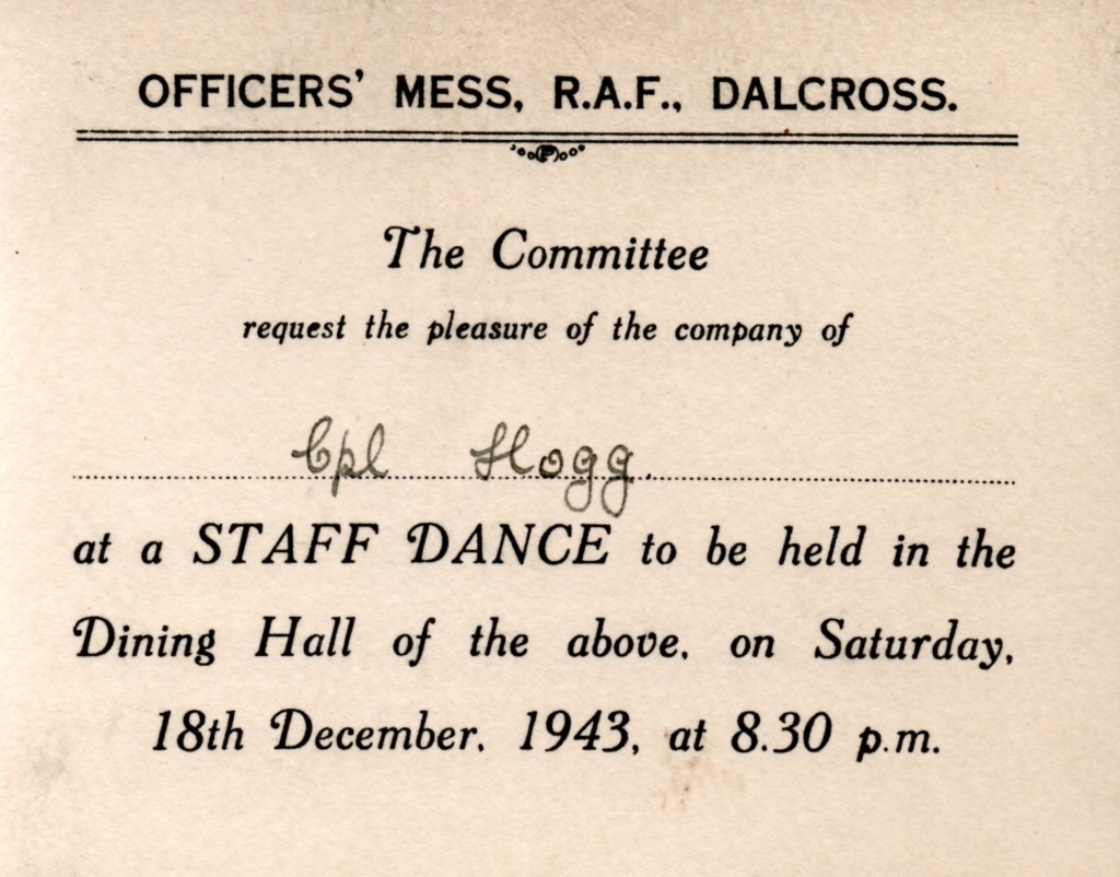 Above: RAF Dalcross: The Officers’ Mess Staff Christmas Dance, invitation card.