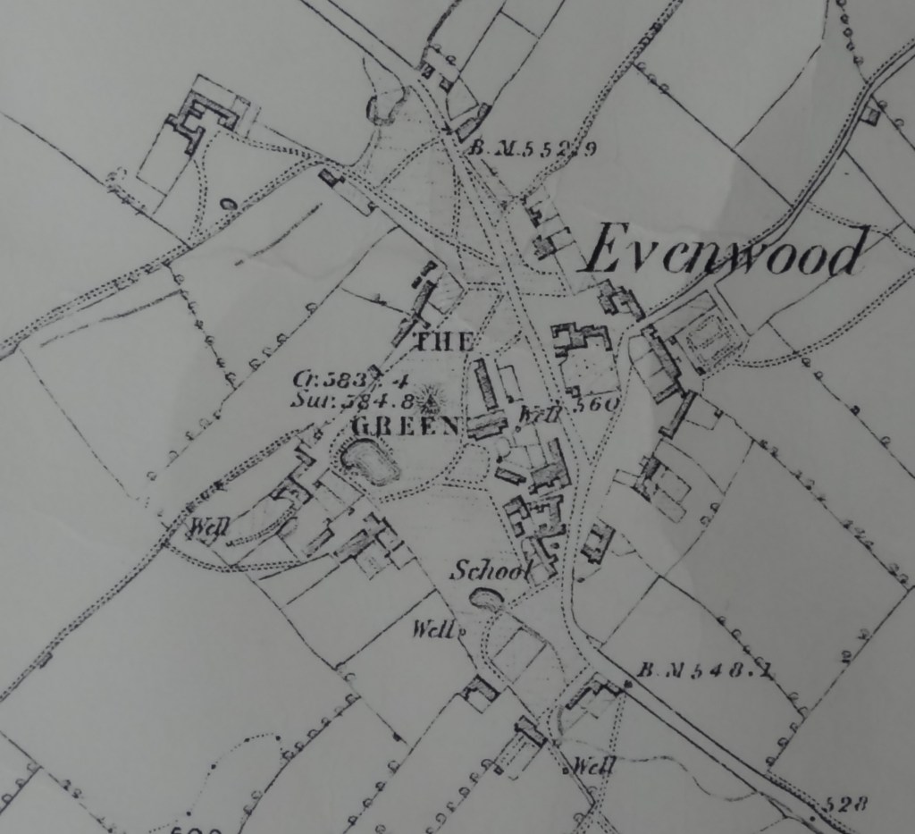 “Evenwood, a rather loose clustering of farmsteads around a rather irregular green, may reflect the plan of an ancestral type of hamlet, rather small and unformalised.”