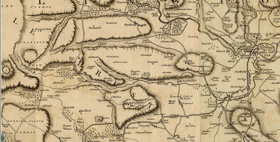 [8] University of Durham Library ref: Map No.16819/6. There appear to be a number of similar maps. Another one covering the same area of Railey Fell is dated 1762 on the title block but the inscription reads, “This plan was drawn by the Order of Mrs. Rachael Peirse for the use of her son Richard Peirse esq. by her most obedient servant Richard Richardson one of the Commissioners and the Surveyors of the Division June 20. 1769”. Presumably, these maps follow on from the 1745 Inclosure Act.