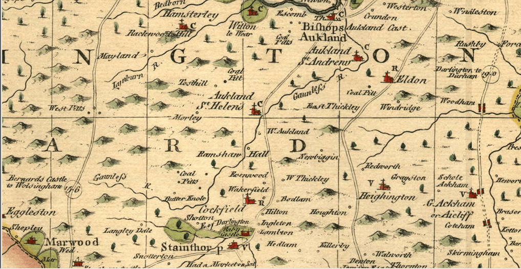 Evenwood and Ramshaw Hall are indicated.