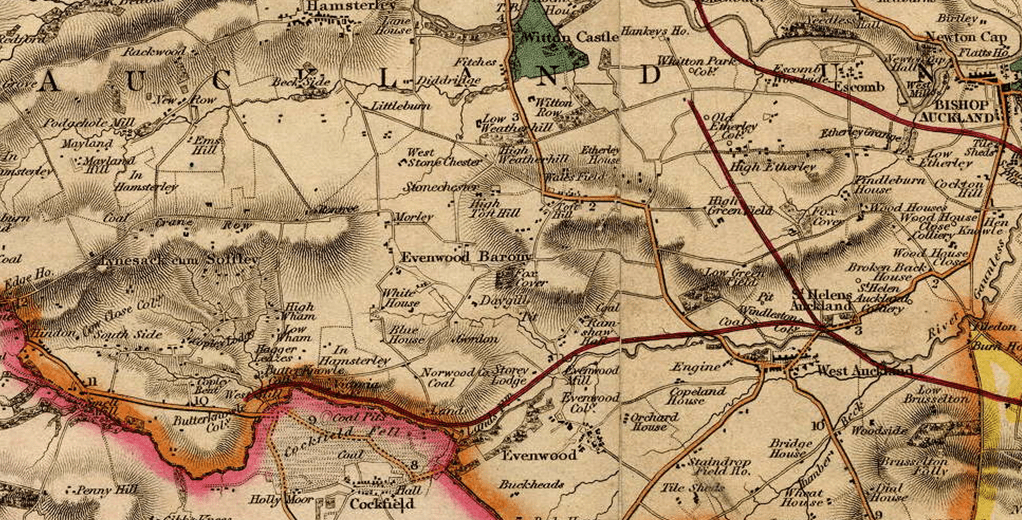 Evenwood Castle is noted.