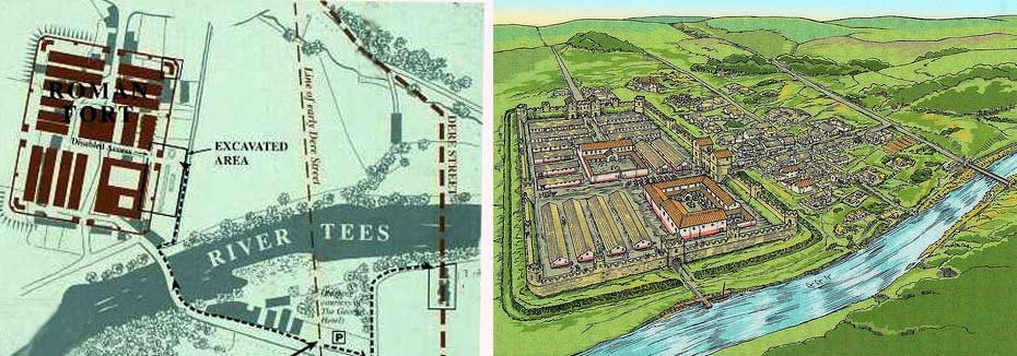 There may have been a fort here in AD70 beside the ford across the River Tees. The later Morbium fort was built about AD270 and was rectangular in shape with towers at each corner. In the centre of the north and south walls were gates through which Dere Street would have passed. The fort was abandoned in the early 5th Century AD. Part of the fort is on display to the public. English Heritage supervises the site.