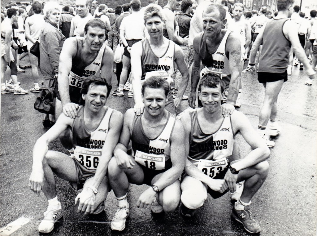 Below: 1995, The Malta Marathon: Andy Laybourn, Jimmy Bainbridge, Tony Hindmarch, John Alexander, Kenny Sams.
