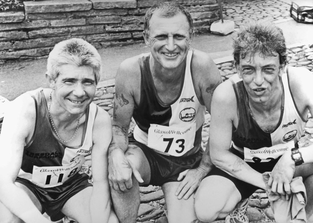 Below: 1992, Barnard Castle 10 mile Run, left to right: Tony Hindmarch, Andy Laybourn & Jim Sowerby.