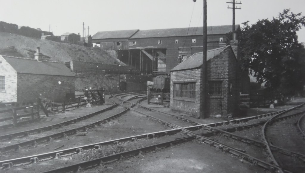 The photo above shows the landing for the full coal tubs to commence the decline down the incline. The shaft and the pit head gear is behind. The building to the right of the photo is that illustrated on the postcard – Mostyn Colliery, distinguished by the 4 arched windows at first floor level and a ventilation construction on the ridge of the roof.