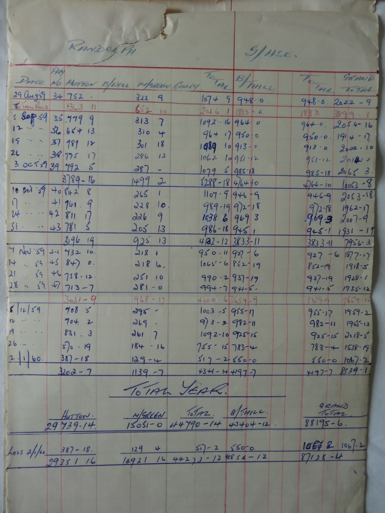 The following documents shows 2 pages from the record of drawings for Randolph & Gordon House Collieries 1959 – the last full year of production.