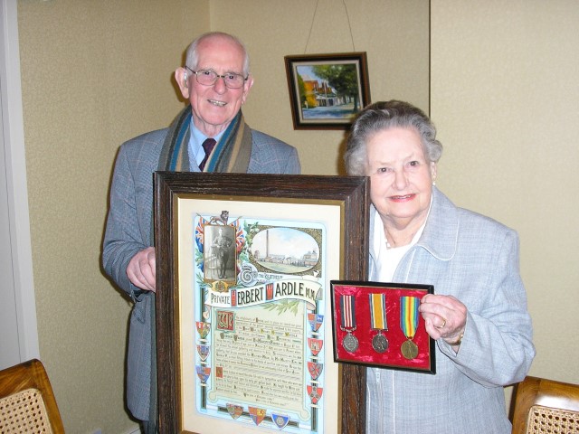 The people of Lands presented the relatives of Sapper Herbert Wardle with an illuminated commemoration which reads: