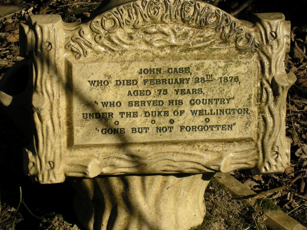 The period from 1815 to 1854 from the end of the Napoleonic Wars to the Crimean War is known as “The Long Peace.” There was no major conflict during this time. John Case’s headstone states that he “served his country under the Duke of Wellington.” The Duke of Wellington’s military career spanned 65 years from 1787 until his death in 1852. Wellington is, of course, a British military icon having defeated France led by Napoleon at the the Battle of Waterloo in 1815. He was Commander in Chief of the British Army between 1842 and 1852 therefore, John Case did indeed serve under the Duke of Wellington for about 5 years between 1842 and 1847.