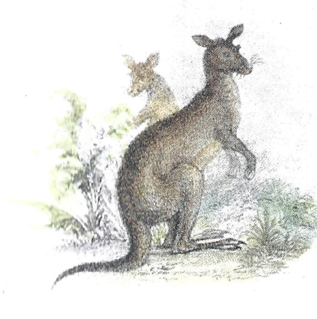 Above: Two contemporary illustrations showing the aboriginal indigenous people and the iconic symbol of Australia, the kangaroo