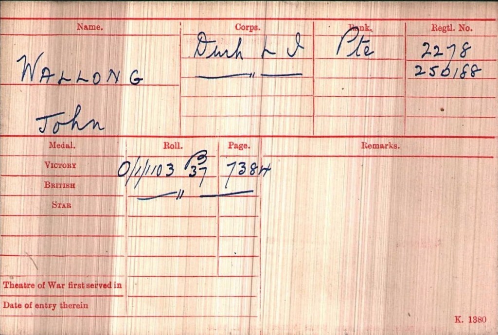 Private J. Walling was awarded the British War and Victory medals.