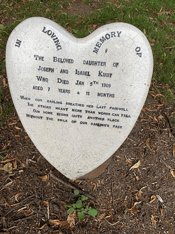 We came across this headstone, with no name for the child who died. Aline found her name which was Mildred. She lived at 10 The Oaks with her parents, Joseph and Isabel Kirby.