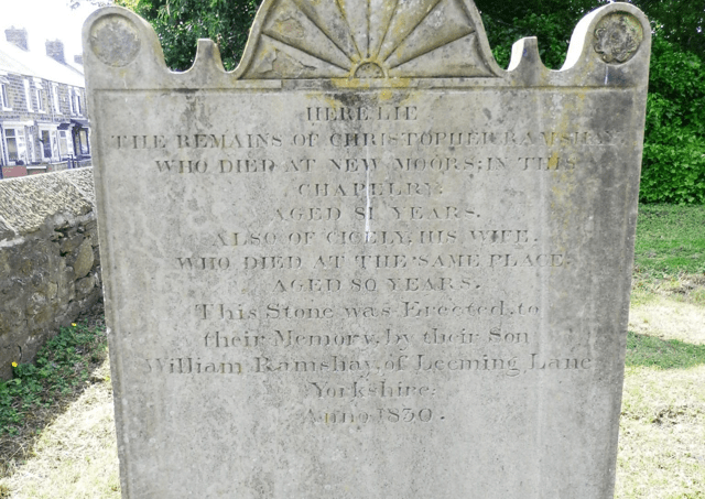 [6] In 1830, their son William Ramshay, of Leeming erected the headstone. Presumably, he was the eldest son. George Ramsahw may well have been serving abroad in the Royal Navy.