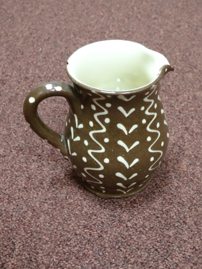 [26] The slipware jug is similar to an item manufactured at Wetheriggs Pottery