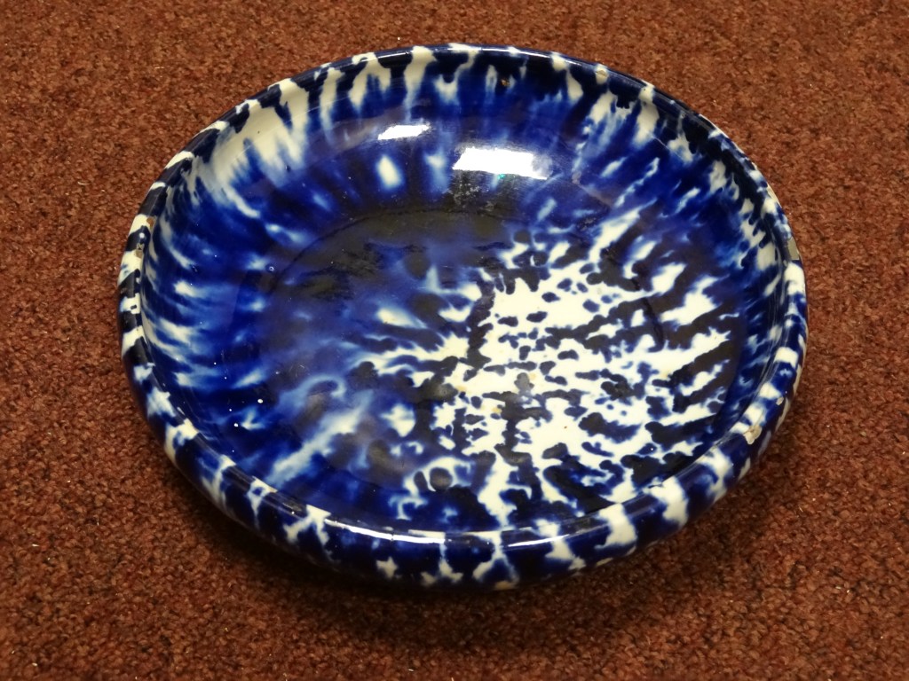 As the sales of family pottery declined, more decorative coloured ware was made. The white slip was stained with copper oxide for green and cobalt for blue.