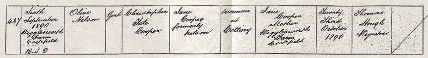Above: 6 September 1890: Olive Nelson Cooper, Register of Birth