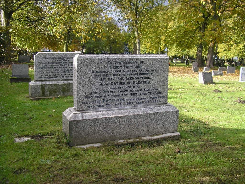 Percy Pattison is not named on the original War Memorial located in Evenwood Cemetery but is recorded on the new War Memorial at Newholme Crescent, Evenwood.