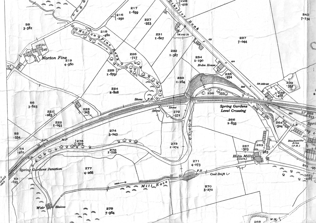 Below: Map to show Spring Gardens Level Crossing and the bridges over the River Gaunless and Norton Fine Beck
