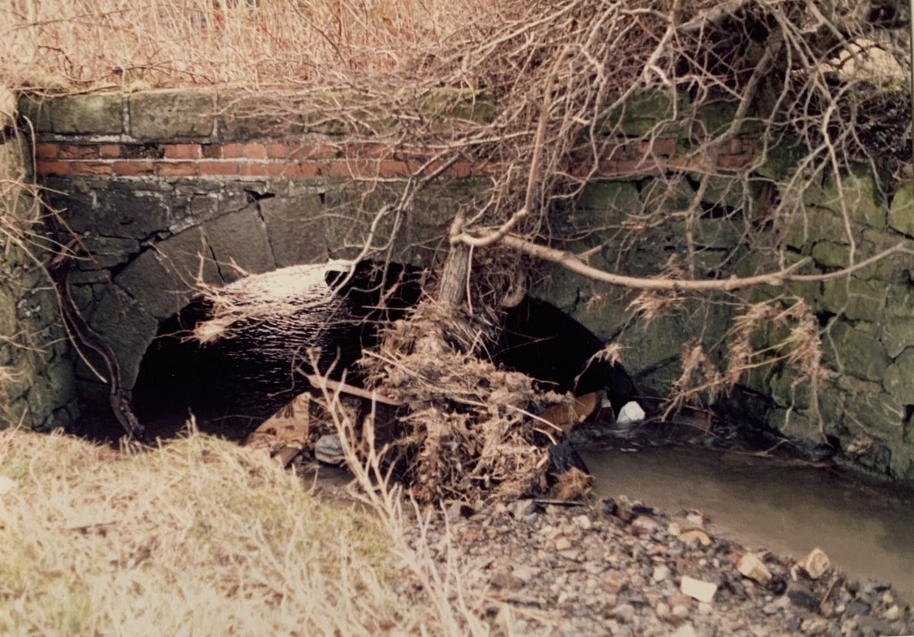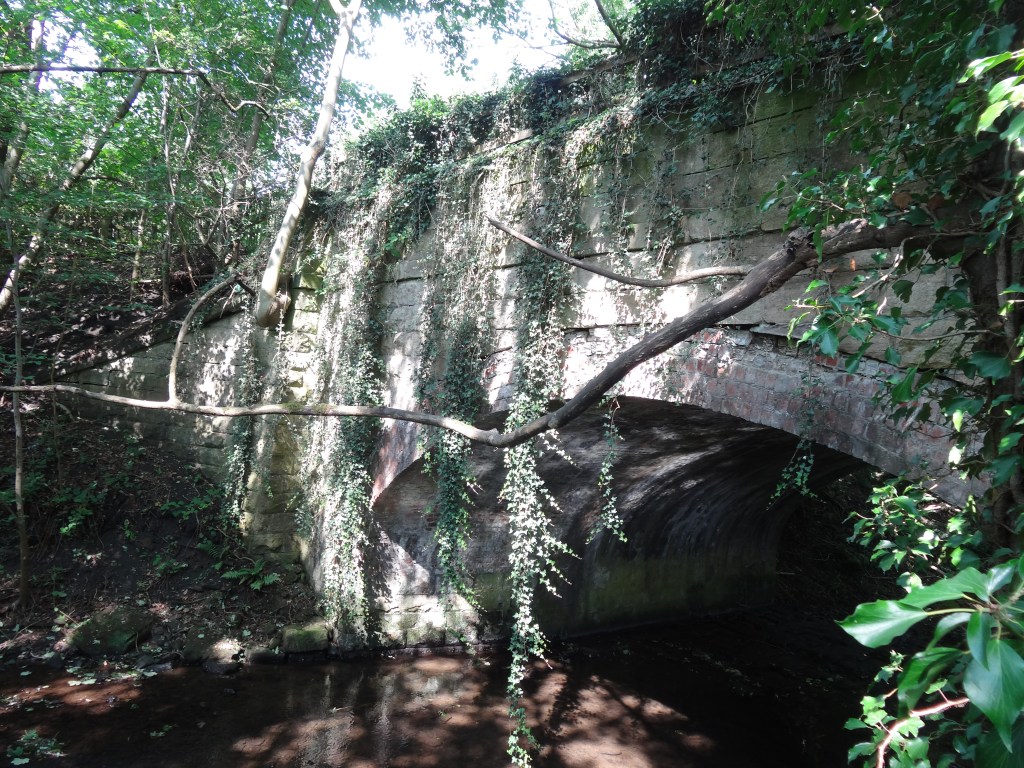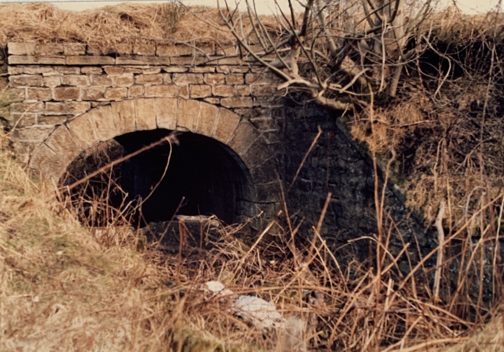 Below: c.1985: A farmer’s accommodation bridge beneath the Butterknowle Branch to the west of the site of Norwood Colliery. The bridge was constructed prior to 1830 when the Haggerleases Branch Line was opened. Fine stonework. Long since removed.