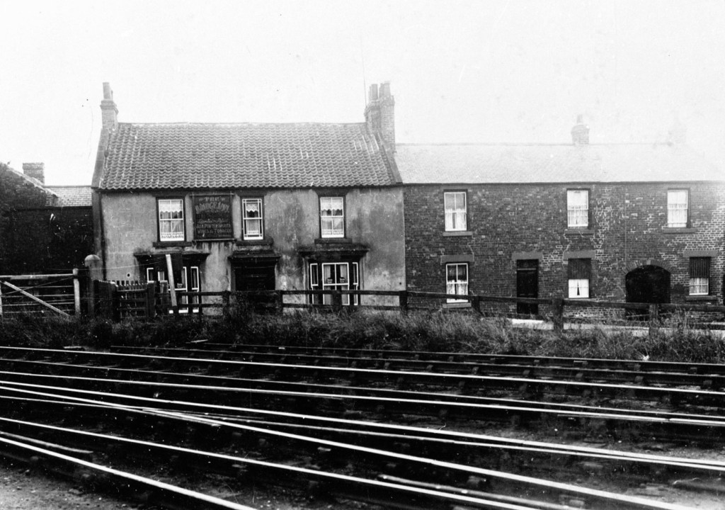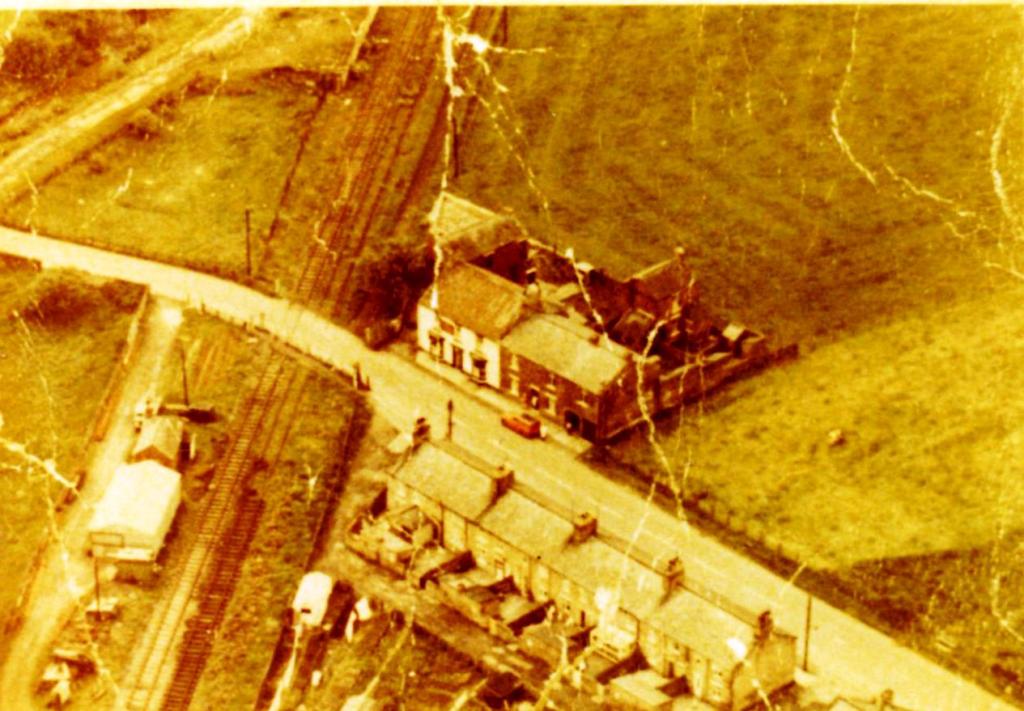 Below: c.1967 The Bridge Inn and the remaining track of the Butterknowle Branch. Jimmy Birch’s engineering yard occupies land formerly the Evenwood Goods Depot.