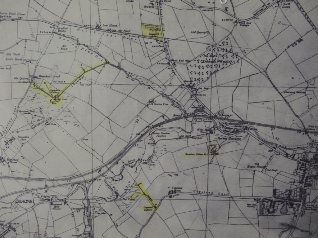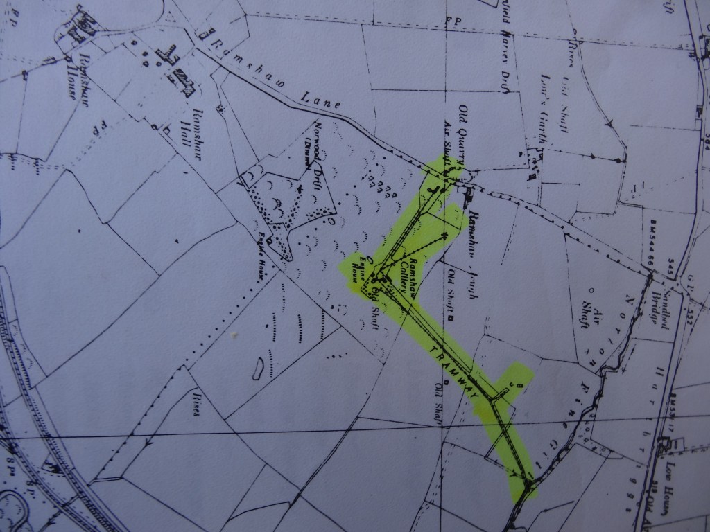 Below: A plan to show the location of Ramshaw No.1 Colliery and the earlier worked Norwood Drift.