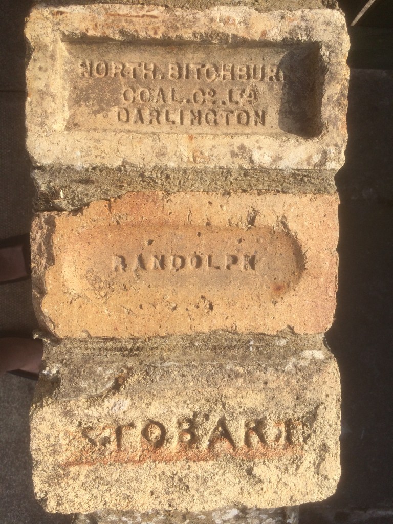 The image below shows the company marks of other local brickworks – the North Bitchburn Coal Company (HQ at Darlington) but the main brickworks were at Hunwick. The company manufactured other goods such as pipes and sanitary ware. Stobarts had brickworks at some of its collieries, particularly at Newton Cap (?)