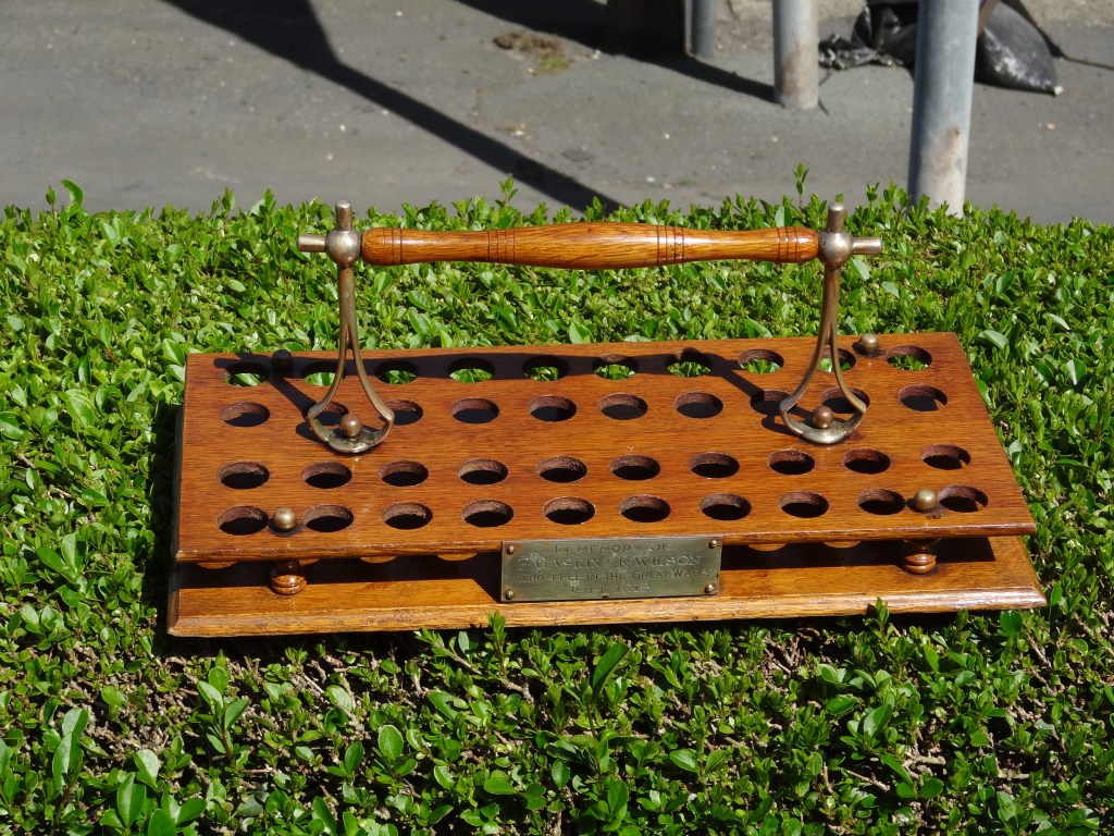 16202 Private Robert William Wilson, 6th Battalion, the Yorkshire Regiment died of wounds 3 October 1916 in Hampstead Hospital, England and is buried in Evenwood Cemetery.[1] He was 20 years old and is commemorated on the Evenwood and Etherley War Memorials, the Rolls of Honour in St. Paul’s Church, Evenwood and St. Cuthbert’s Church, Etherley and the communion tray in Etherley Methodist Church.