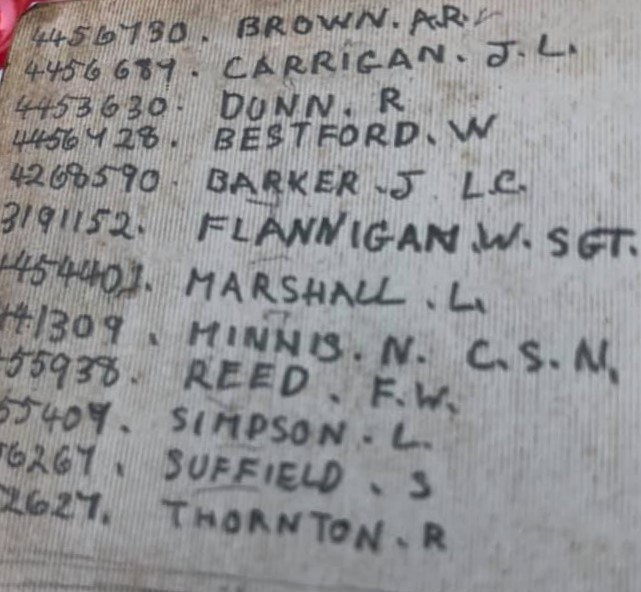 There is also a list of 12 soldiers in George’s diary. All are DLI men and top of the list is Private A.R. Brown. This was Ray Brown, from Evenwood, who was killed in action. In fact, all 12 were killed in action. POWs must have learnt the fate of their comrades and George duly recorded the names. George Walton possibly held some position in Camp administration for him to hold this type of information.