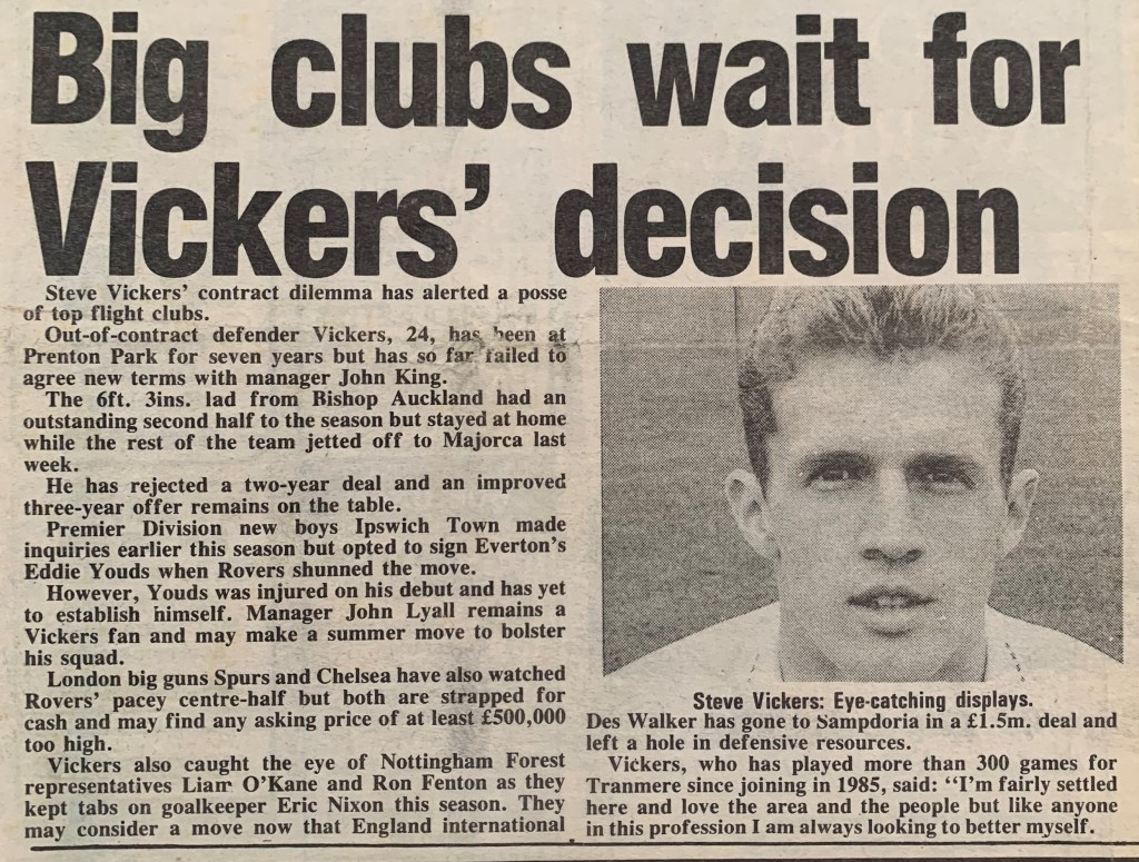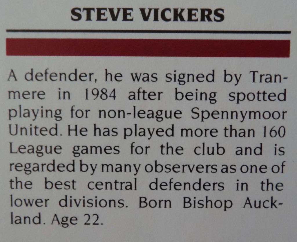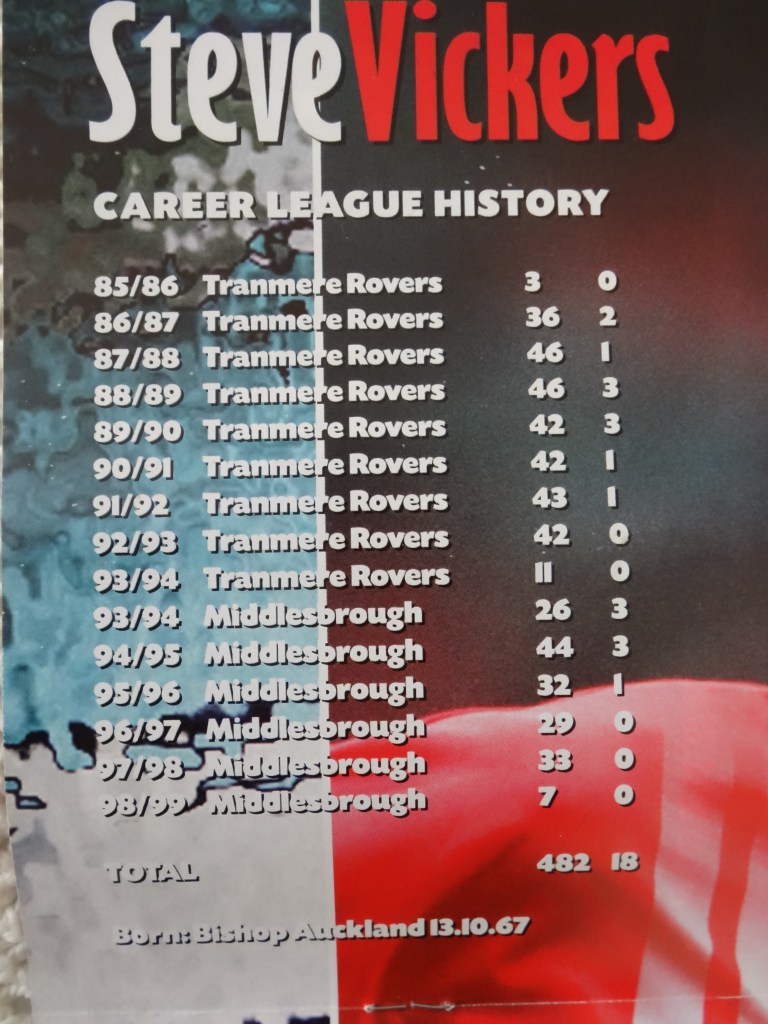 Steve Vickers played as a central defender and made over 600 appearances in the Premier League and Championship, the majority of which were with Tranmere Rovers and Middlesbrough.