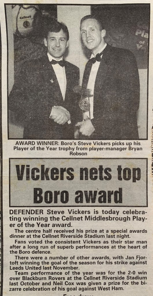 1993 – 2001: Steve joined MIDDLESBROUGH for £700,000 making 293 appearances, scoring 20 goals and he played in the 1997 FA Cup Final. He won the club’s Player of the Year Award for the 1993-94 season. He was a regular under Bryan Robson but Steve McClaren’s arrival in 2001 coincided with a loan move to Birmingham City.